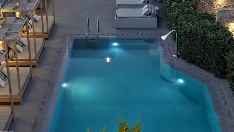 Das Kosmoplaz Beach Hotel bietet eine hervorragende Lage direkt am schönen Strand von Platis Gialos und ist nur 3 km von Mykonos-Stadt entfernt. Das Hotel beeindruckt mit einem Pool, einem Hydromassage-Whirlpool und einem Restaurant auf der Dachterrasse mit einem atemberaubenden Blick auf das Meer. Die klimatisierten Zimmer verfügen alle über einen Balkon mit Blick auf den Pool oder die Ägäis und sind mit modernen Annehmlichkeiten wie einem Flachbild-Sat-TV und einer Minibar ausgestattet. WLAN steht in allen öffentlichen Bereichen kostenlos zur Verfügung. Genießen Sie ein amerikanisches oder griechisches Frühstück und erfrischende Getränke und Cocktails auf der Dachterrasse. Das Hotel bietet außerdem einen kostenlosen Transferservice zum Hafen oder zum Flughafen. Eine Bushaltestelle mit Verbindung nach Mykonos-Stadt befindet sich ebenfalls in der Nähe des Hotels.