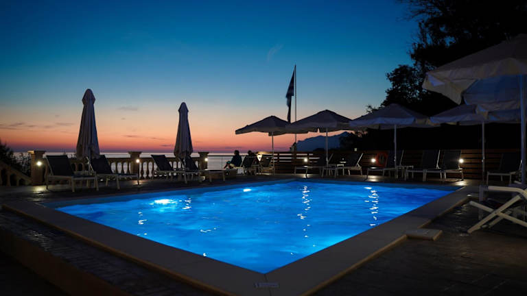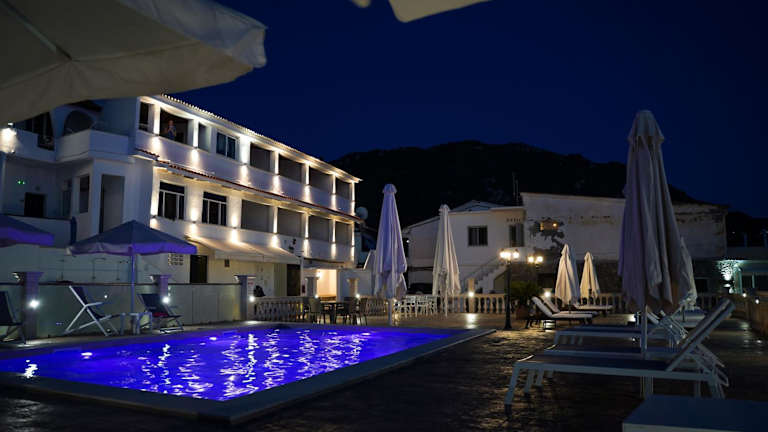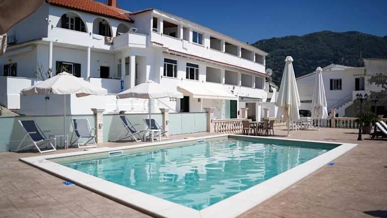 Das Kostas Beach Apartments liegt direkt am Strand von Agios Gordios, einem beliebten Badeort an der Westküste von Korfu. Hier können Sie den Sand zwischen Ihren Zehen spüren und das kristallklare Wasser des Ionischen Meeres genießen. Das Zentrum von Agios Gordios mit seinen Geschäften, Restaurants und Bars ist nur 500 m entfernt, sodass Sie alles bequem zu Fuß erreichen können. Der internationale Flughafen von Korfu liegt 16 km entfernt und ist leicht zu erreichen. Kostenlose Parkplätze stehen Ihnen etwa 250 m vom Hotel entfernt zur Verfügung.