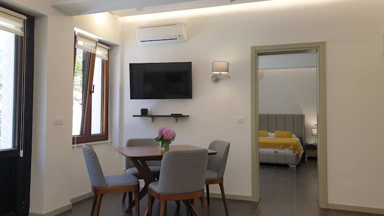 Kotor Center W bietet Übernachtungsmöglichkeiten in einer modernen Unterkunft mit Klimaanlage und kostenlosem WLAN. Die Gäste können die Terrasse mit Bergblick nutzen und finden sowohl einen Sitzbereich als auch einen Flachbild-TV vor.