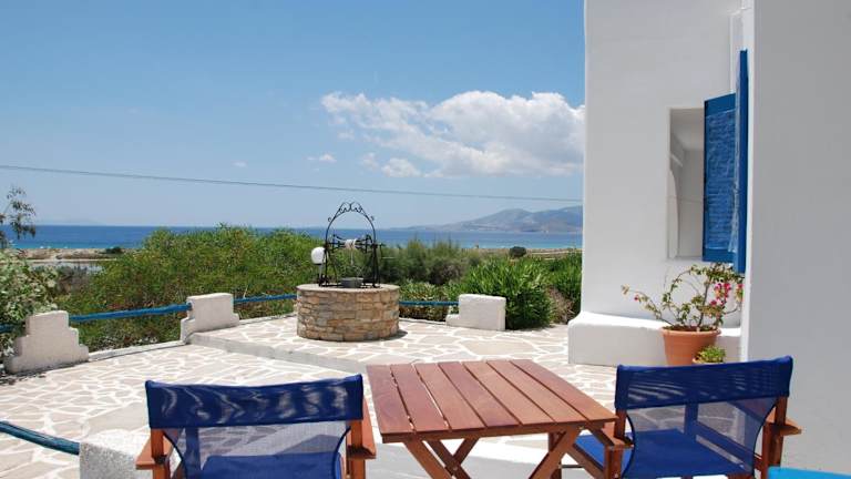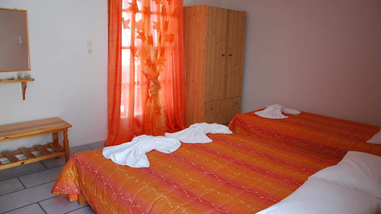 Die Zimmer in der Koulas Pension sind komfortabel und im traditionellen Kykladen-Stil eingerichtet. Alle Zimmer verfügen über einen möblierten Balkon, von dem aus Sie einen herrlichen Blick auf die Ägäis genießen können. Die klimatisierten Zimmer sind mit kostenfreiem WLAN, Sat-TV und einem Kühlschrank ausgestattet. Die Studios verfügen außerdem über eine Küchenzeile mit Kochfeldern, so dass Sie sich auch selbst verpflegen können. Die Unterkünfte sind in hellen Farben gehalten und mit schmiedeeisernen Betten und Fliesenböden ausgestattet.