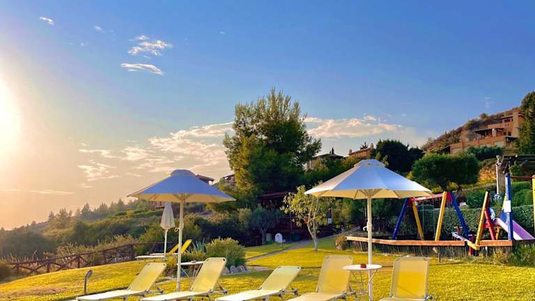 Zu den Freizeitmöglichkeiten gehören ein Spielplatz, Bodenschach, Tischtennis und Fitnessgeräte. Die Lage in der Nähe des Strandes erlaubt zudem verschiedene Wassersportaktivitäten. Der Ort Siviri, etwa 25 km entfernt, bietet im Sommer zahlreiche kulturelle Veranstaltungen.