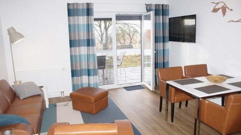 Die Ferienwohnung umfasst ein Schlafzimmer, ein Wohnzimmer und ein Badezimmer mit Dusche. Zur Ausstattung gehören ein Flachbild-TV sowie eine gut ausgestattete Küche mit Kühlschrank und Geschirrspüler. Handtücher und Bettwäsche können gegen Aufpreis bereitgestellt werden.