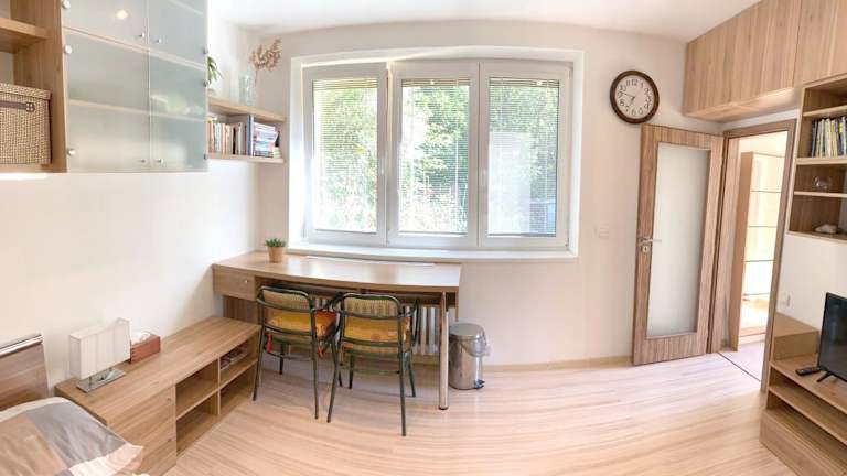 Krásný apartmán u lesa, trolejbus do centra a BVV bietet eine Ferienwohnung mit Gartenblick. Die Unterkunft verfügt über einen Garten und ist mit kommenden Annehmlichkeiten ausgestattet, darunter WLAN und kostenlose Parkmöglichkeiten. Es wird kein Junggesellen-/Junggesellinnenabschied oder ähnliche Feiern gestattet.