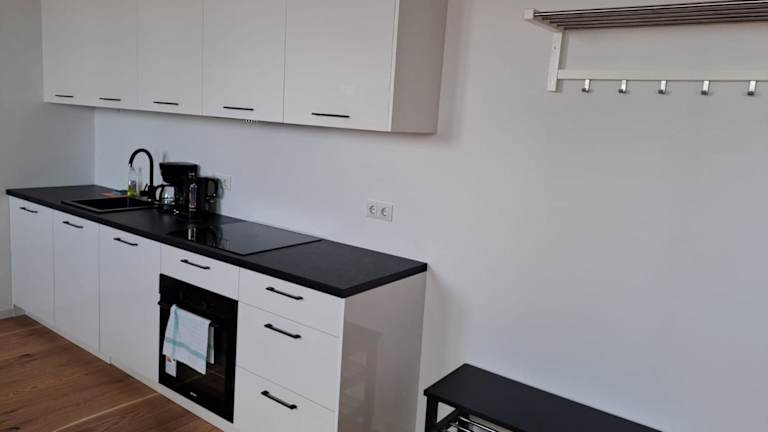 Die Unterkunft verfügt über eine Küche, die mit einem Kühlschrank, Geschirrspüler, Ofen, Herdplatte, Kaffeemaschine und Wasserkocher ausgestattet ist.
