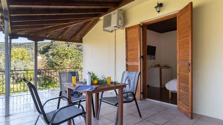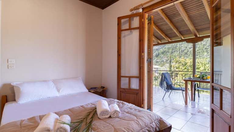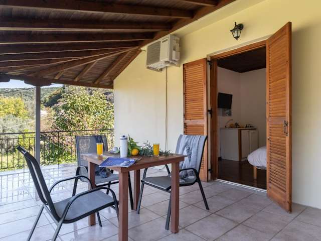 Das Krinos Apartment 3 bietet ein komfortables Schlafzimmer und ein Badezimmer mit Bettwäsche und Handtüchern. Das Apartment verfügt über eine voll ausgestattete Küche, in der Sie Ihre eigenen Mahlzeiten zubereiten können. Ein Balkon mit Bergblick lädt zum Entspannen ein.