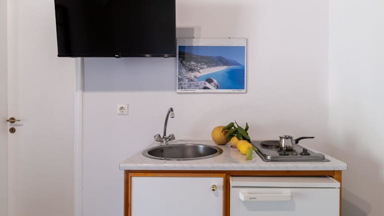 Das Krinos Apartment 3 ist eine komfortable Unterkunft mit Gartenblick, ideal gelegen für einen entspannten Aufenthalt auf Lefkada. Das klimatisierte Apartment bietet ein Schlafzimmer, ein Badezimmer, eine voll ausgestattete Küche und einen Balkon mit Bergblick. Kostenlose Parkplätze und WLAN sind ebenfalls verfügbar. Entdecken Sie die nahe gelegenen Sehenswürdigkeiten wie die Dimosari-Wasserfälle und die Museen der Region. Der Flughafen Aktion ist nur 40 km entfernt.