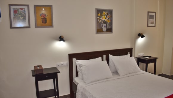 Wenn Sie in Pefkochori eine Unterkunft in einer naturnahen Umgebung suchen, dann ist das Kripis Studio eine geeignete Wahl. Das Kripis Studio heißt Sie mit 6 klimatisierten Hotelzimmern willkommen. Es bietet den Urlaubern kostenfreies Wireless Internet. Im Hotel ist ein Gepäckraum vorhanden. Das StudioKripis befindet sich in dem zentralsten Punkt von Pefkohori, neben der Kapelle von St. George. Nur 50 Meter vom Strand des Dorfes, Sie haben Ihre Patisserie, Supermarkt, Bäckerei, Restaurants und jede Menge Spaß für alle Altersgruppen. Die Wohnungen sind geräumig und können Familien und Gruppen von 4,5 Personen. Sie haben eine Küche mit Kühlschrank und Herd organisiert . Auch große Balkon, Klimaanlage, TV und kostenfreien Internetzugang. Es gibt vier Wohnungen im ersten Stock und eines im Erdgeschoss. Wenn Sie Ihren Parkplatz in einem überwachten Bereich zu halten wollen, fragen Sie uns nach den Kosten. Die Wohnungen im ersten Stock sind: 1. Wohnung Νο1, für 2-5 Personen, mit Küche 2. Wohnung Νο2, für 2-4 Personen, mit Küche 3. Wohnung Νο3 (Zimmer mit separatem aus der Küche) für 2-5 Personen 4. Wohnung Νο4 (Zimmer mit separatem aus der Küche) für 2-5 Personen Die Wohnung im Erdgeschoss ist: 5. Apartment Νο 5 (Studio mit separaten Raum aus der Küche) für 2-5 Personen 6. Zimmer Nr. 6 für 2-3 Personen, ohne Küche 7. Zimmer Nr. 7 für 2-3 Personen, ohne Küche Wichtige Informationen Bitte beachten Sie, dass die Straße vor den Kripis Studios täglich von 19:00 Uhr bis zum frühen Morgen für Autos gesperrt ist. Gäste müssen ihr Gepäck an der Rezeption abgeben und dann etwas weiter parken, da das Parken vor der Unterkunft nicht gestattet ist. Wenn Sie Ihren Parkplatz in einem bewachten Bereich behalten möchten, fragen Sie uns nach den Kosten.