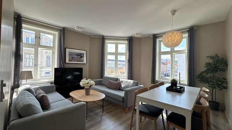 KRSferie leiligheter i sentrum ist eine Unterkunft in Kristiansand, die komfortable Annehmlichkeiten bietet, darunter kostenloses WLAN, einen Garten mit Terrasse und Stadtblick sowie Privatparkplätze vor Ort.