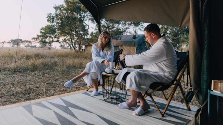 Kruger Untamed - Satara Plains Camp ist eine Zelt-Lodge, die ein einzigartiges Übernachtungserlebnis in der Wildnis des Kruger Nationalparks bietet. Die Lodge legt Wert auf eine entspannte Atmosphäre und bietet verschiedene Annehmlichkeiten wie eine Bar und eine Sonnenterrasse.