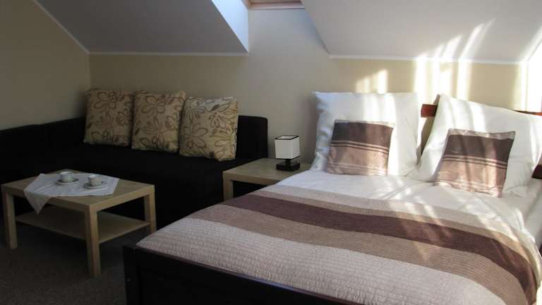 Die Unterkunft befindet sich in Ostrowo, in der Region Pommern, und ist in einer Entfernung von 1,8 km zum Strand Ostrowo gelegen. Der Hafen von Gdynia ist 47 km und der Bahnhof 49 km von der Unterkunft entfernt. Der nächstgelegene Flughafen, der Lech-Wałęsa-Flughafen Danzig, liegt 70 km entfernt.