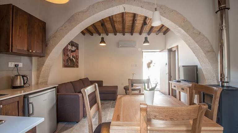 Die Apartments im Ktima 1937 Kannides sind geräumig und voll ausgestattet. Sie sind im regionalen Stil mit Holzbalkendecken und gewölbten Wänden eingerichtet, was ihnen einen charmanten und gemütlichen Charakter verleiht. Jedes Apartment verfügt über eine gut ausgestattete Küchenzeile mit einem Essbereich und ein komfortables Wohnzimmer mit einem Flachbild-Sat-TV. Hier finden Sie alles, was Sie für einen angenehmen Aufenthalt benötigen.