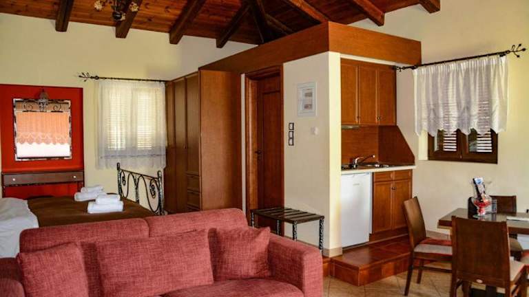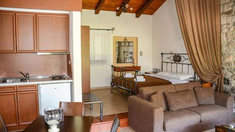 Die klimatisierten Suiten im Ktima Kletsa sind geräumig und bieten eine gemütliche Atmosphäre. Jede Suite verfügt über schmiedeeiserne Betten, Teppiche und einen komfortablen Sitzbereich mit einem Sofa und einem LCD-Sat-TV. Die Suiten sind mit einer Küchenzeile ausgestattet, die einen Kühlschrank, Kochfelder und einen Essbereich umfasst. Auf der möblierten Terrasse können Sie den atemberaubenden Bergblick genießen.