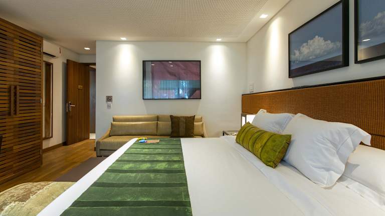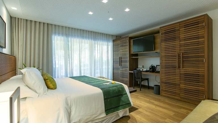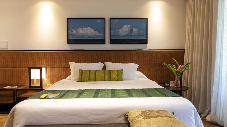Die Zimmer im Kûara Hotel sind komfortabel und modern eingerichtet. Jedes Zimmer verfügt über Klimaanlage, Flachbild-TV, Kaffeemaschine und Schreibtisch. Die Badezimmer sind mit einer Dusche, einem Haartrockner und hochwertigen Pflegeprodukten von L'Occitane ausgestattet. Die Zimmer bieten auch einen schönen Blick auf die umliegende Natur.