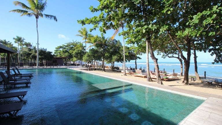 Das Kûara Hotel befindet sich in Arraial d'Ajuda und bietet eine malerische Lage umgeben von Natur. Das Hotel liegt in einem Reservat der Mata Atlântica und ist von Klippen, einem Mangrovenwald und einem charmanten Fluss umgeben. Der private Sandstreifen des Hotels bietet einen wunderschönen Blick auf das warme Meer und weiße Sandstrände. Das Hotel ist nur 5 Minuten vom Dorf Arraial D'Ajuda entfernt, das für seine Handwerksläden, Bars und Restaurants bekannt ist. Gäste können zwischen privaten Flügen zum Terra Vista Airport oder kommerziellen Flügen zum Porto Seguro Airport wählen.