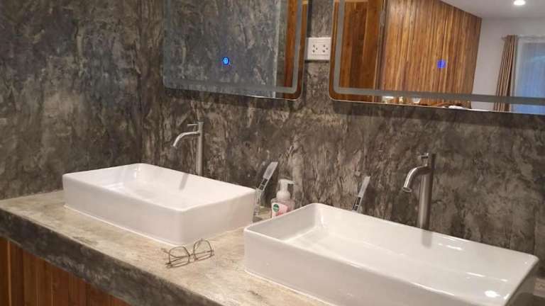Das Hotel umfasst ein Restaurant sowie eine Bar, in der Gäste bei einem Drink verweilen können.