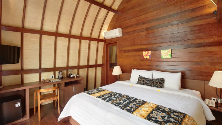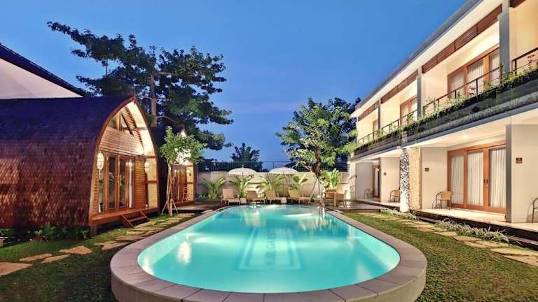Das Kubu GWK Resort in Jimbaran ist ein charmantes Hotel, das eine ideale Lage im Stadtteil Bukit bietet. Mit kostenfreien Fahrrädern und kostenfreien Privatparkplätzen können Gäste die Gegend erkunden und den nahegelegenen Strand Jimbaran besuchen. Das Hotel bietet komfortable und klimatisierte Zimmer mit moderner Ausstattung und ein Restaurant, das indonesische, asiatische und internationale Küche serviert. Mit einem Außenpool, einem Garten und einem Kinderspielplatz bietet das Hotel auch zahlreiche Möglichkeiten zur Entspannung und Freizeitgestaltung.