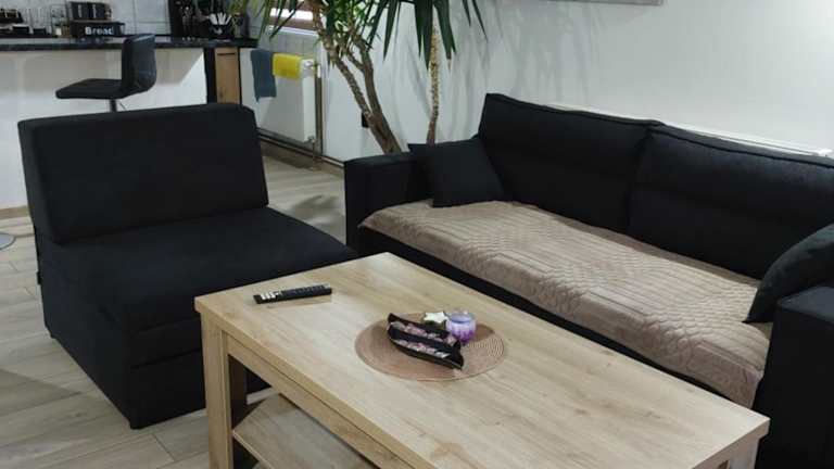 Die Ferienwohnung verfügt über zwei Schlafzimmer, ein Wohnzimmer und ein Badezimmer mit Dusche. Die gut ausgestattete Küche umfasst einen Kühlschrank und einen Ofen. Ein Flachbild-TV ist ebenfalls vorhanden. Gäste haben Zugang zu einem Garten und einer Terrasse, von der aus sie den Flussblick genießen können.