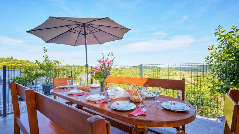 Die Ferienwohnung umfasst 3 Schlafzimmer, ein Wohnzimmer mit Flachbild-TV, eine gut ausgestattete Küche mit Kühlschrank und Geschirrspüler sowie ein Badezimmer mit Bidet. Eine Terrasse mit Bergblick ist ebenfalls vorhanden. Handtücher und Bettwäsche werden bereitgestellt.
