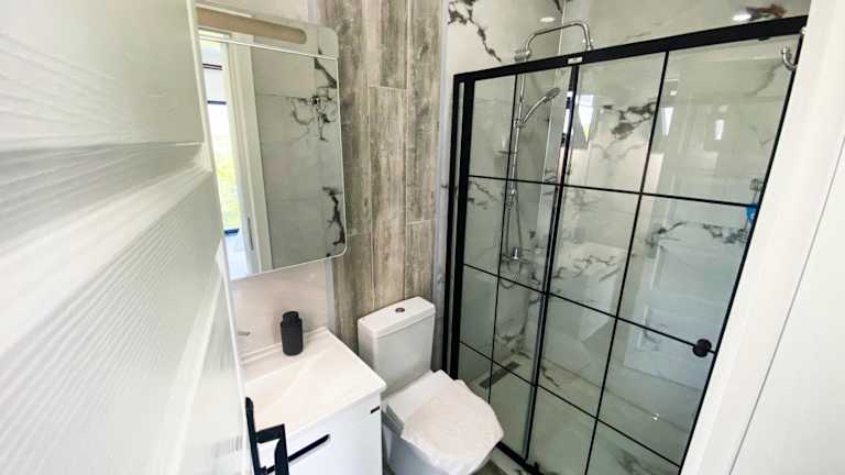 Die Villa verfügt über zwei Schlafzimmer, eine vollständig ausgestattete Küche mit Kühlschrank und Geschirrspüler, einen Flachbild-TV sowie einen Sitzbereich. Es stehen drei Badezimmer mit Dusche zur Verfügung. Handtücher und Bettwäsche werden bereitgestellt.