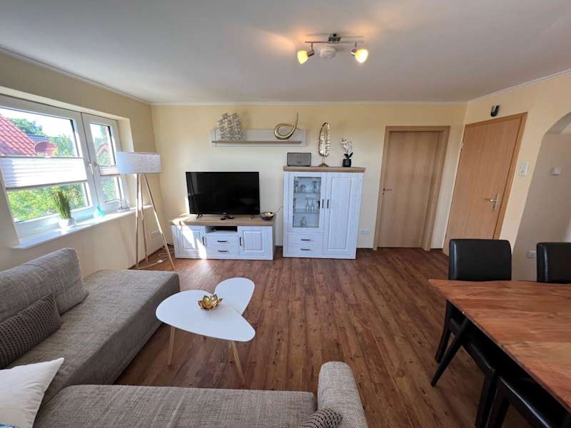 Kugelbake Bantje Wohnung 2 ist eine Ferienwohnung, die Übernachtungsmöglichkeiten mit kostenlosem WLAN und einem Flachbild-TV bietet. Die Unterkunft ist mit einer Terrasse ausgestattet, die einen Gartenblick bietet.