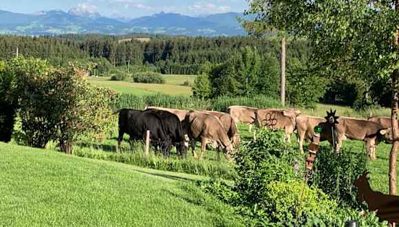 Die Unterkunft Kuh Heimat - Bergblick - Terrasse befindet sich in Buchenberg, Bayern. In der Nähe sind verschiedene Sehenswürdigkeiten, darunter das Museum der Stadt Füssen und das Kloster St. Mang, beide in etwa 50 km Entfernung. Die nächste größere Stadt, die für zahlreiche Freizeitmöglichkeiten bekannt ist, ist Füssen. Zudem liegt der Flughafen Memmingen ca. 50 km entfernt.