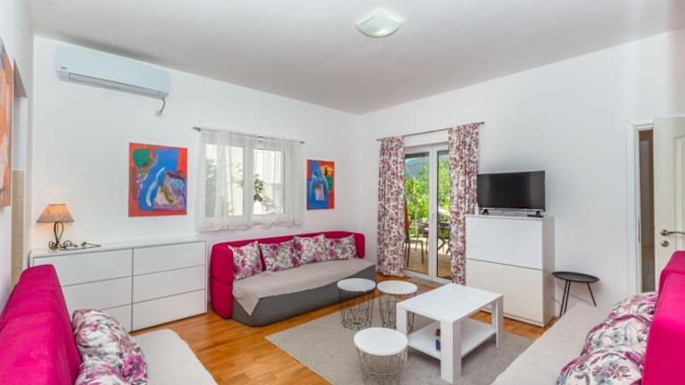 Kumbor beauty bietet eine Ferienwohnung mit einer Veranda und einem Patio, die einen Blick auf den Garten und das Meer eröffnet. Die Unterkunft verfügt über kostenfreies WLAN und ist klimatisiert.