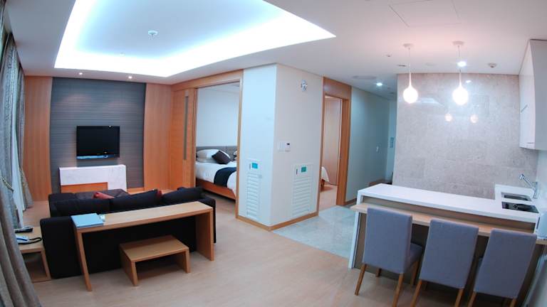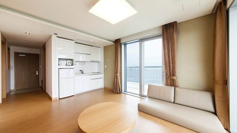 Das Keumho Jeju Resort in Seogwipo ist ein ideales Hotel für Selbstversorger mit einer voll ausgestatteten Küche. Hier können Sie einen entspannten Aufenthalt mit Blick auf den wunderschönen Ozean von Jeju genießen. Das Resort bietet zusätzliche Annehmlichkeiten wie Grillmöglichkeiten, eine Sauna und Karaoke-Maschinen gegen Aufpreis. Die geräumigen Zimmer verfügen über komfortable Sofas, Esstische und TVs. Die 24-Stunden-Rezeption und der Münzwaschsalon sorgen für zusätzlichen Komfort. Erkunden Sie die Umgebung mit den Fahrrädern des Resorts oder lassen Sie sich gegen Aufpreis bei einer Massage verwöhnen.