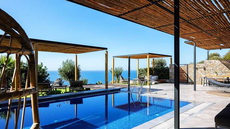 Die Kumo Villas in Agios Pavlos auf Kreta bieten Ihnen eine erstklassige Unterkunft mit herrlichem Meerblick und modernen Annehmlichkeiten. Genießen Sie den saisonalen Außenpool, kostenfreies WLAN und Grillmöglichkeiten. Die Villen sind geschmackvoll eingerichtet und verfügen über eine voll ausgestattete Küche sowie ein eigenes Bad. Erkunden Sie die Umgebung mit dem Fahrrad und lassen Sie sich von den freundlichen Mitarbeitern bei der Organisation eines Mietwagens unterstützen.