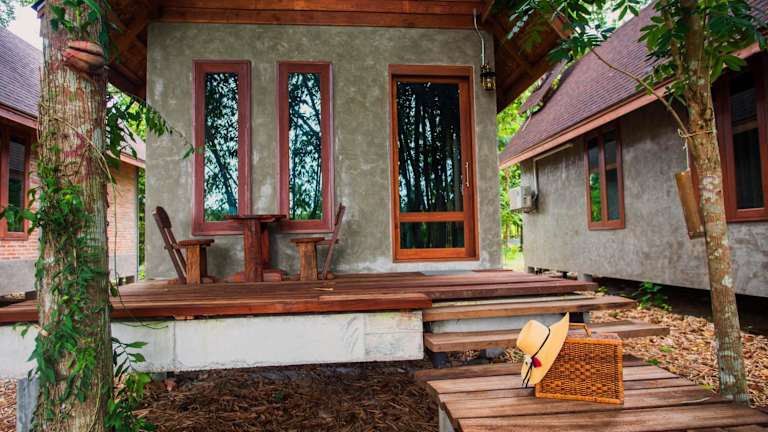 Die Zimmer im Kung Nok Tha Resort Nakhon Si Thammarat sind mit einem Balkon mit Blick auf den Garten ausgestattet. Jedes Zimmer verfügt über einen Sitzbereich sowie über einen Flachbild-TV mit Satellitenkanälen.