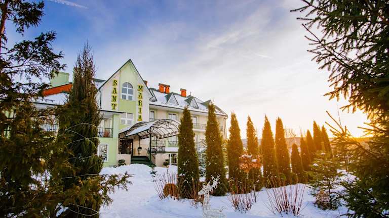 Das Курортний комплекс Santa Maria in Schidnyzja bietet seinen Gästen einen entspannten und luxuriösen Aufenthalt. Mit einem Außenpool, einer Sauna und einem Fitnesscenter können Sie sich hier rundum wohlfühlen. Das elegante Restaurant serviert europäische Küche und verfügt über eine Sommerterrasse. Die Zimmer sind stilvoll eingerichtet und verfügen über kostenfreies WLAN. Freuen Sie sich auf Aktivitäten wie Tennis, Billard und Tischtennis sowie auf eine Bibliothek. Der Kurort Truskawez und der Flughafen Lwiw sind ebenfalls gut erreichbar.