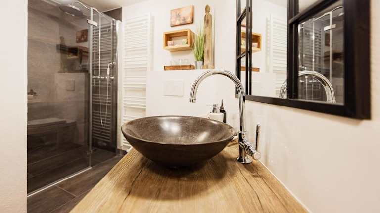 Die Ferienwohnung verfügt über ein Schlafzimmer, ein Wohnzimmer mit Flachbild-TV und eine gut ausgestattete Küche mit Kühlschrank und Ofen. Das Badezimmer ist mit einer Dusche ausgestattet. Handtücher und Bettwäsche werden gestellt.