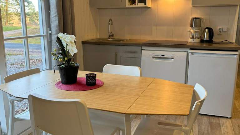 Die Ferienhäuser auf dem Campingplatz KustCamp Gamleby sind komplett ausgestattet und verfügen über eine Küchenzeile mit Mikrowelle und Kühlschrank. Jedes Ferienhaus hat eine Terrasse, einen Sitzbereich und ein eigenes Badezimmer mit Dusche. Die Unterkünfte bieten somit alles, was Sie für einen komfortablen Aufenthalt benötigen.