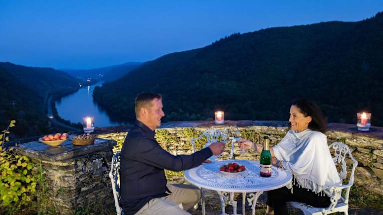 Das Kutscherhaus auf Burg Coraidelstein liegt in Klotten und bietet eine ideale Lage für alle, die die historischen Burgen der Region erkunden möchten. Die Reichsburg Cochem ist nur 5,4 km entfernt und die Burg Eltz erreichen Sie nach einer kurzen Fahrt von 30 km. In der Nähe befinden sich auch das Kloster Maria Laach, das 37 km entfernt liegt, und der Nürburgring, der 44 km entfernt ist. Der Flughafen Frankfurt-Hahn ist 43 km vom Kutscherhaus entfernt.
