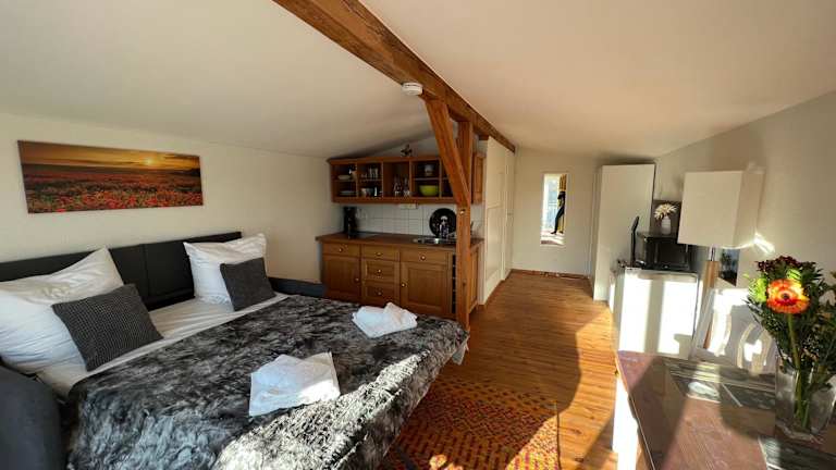 Die Unterkunft ist ausgestattet mit einem Flachbild-TV sowie einem eigenen Badezimmer, das mit einer Dusche und einem Haartrockner versehen ist. In der Küchenzeile finden sich ein Kühlschrank, eine Mikrowelle und ein Toaster. Auf Wunsch können Handtücher und Bettwäsche gegen Aufpreis bereitgestellt werden.