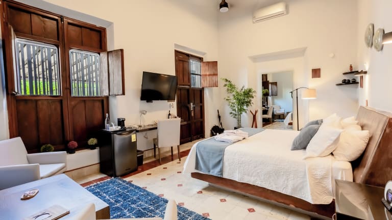 Das Kuxtal Hotel Boutique in Mérida bietet seinen Gästen einen angenehmen Aufenthalt mit einem Außenpool, einem schönen Garten und einer Terrasse. Das Hotel liegt in der Nähe verschiedener Sehenswürdigkeiten und bietet eine 24-Stunden-Rezeption, kostenfreies WLAN und einen Zimmerservice. Die klimatisierten Zimmer sind modern eingerichtet und verfügen über Annehmlichkeiten wie einen Schreibtisch, eine Kaffeemaschine, einen Kühlschrank und einen Flachbild-TV. Starten Sie Ihren Tag mit einem köstlichen Frühstück, das verschiedene Optionen wie kontinentale, amerikanische und vegetarische Speisen bietet. Das Hotelrestaurant serviert auch amerikanische Küche. Zusätzlich bietet das Kuxtal Hotel Boutique einen Autovermietungsservice und ein Businesscenter. Erkunden Sie die beliebten Sehenswürdigkeiten in der Nähe des Hotels wie die Kathedrale von Mérida und den Hauptplatz. Der internationale Flughafen Manuel Crescencio Rejón ist ebenfalls leicht erreichbar.