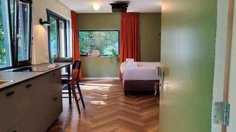 Das Kwadijkerbos bietet gemütliche Unterkünfte mit kostenfreiem WLAN und kostenfreien Privatparkplätzen. Jedes Zimmer verfügt über einen Flachbild-TV, einen Sitzbereich und eine voll ausgestattete Küche mit Kühlschrank und Kochfeld. Das private Badezimmer ist mit einer Dusche und kostenlosen Pflegeprodukten ausgestattet.