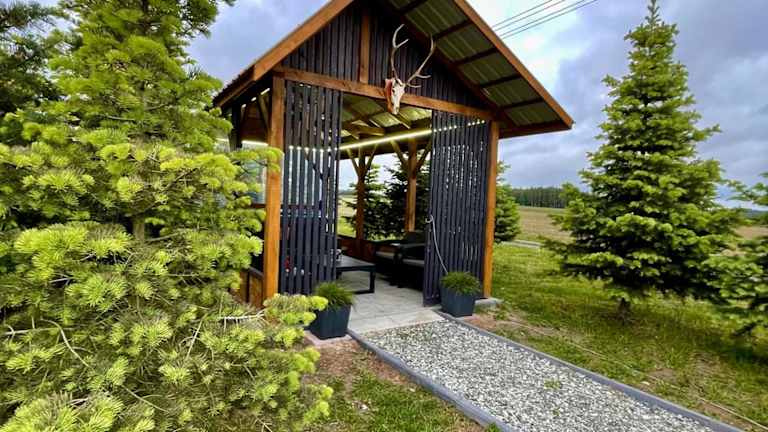 Kwatera - Pod Wiatrakiem, JACUZZI ZEWNĘTRZNE bietet einen Garten und Grillmöglichkeiten. Es handelt sich um eine Nichtraucherunterkunft, die besonderen Wert auf die Sicherheit ihrer Gäste legt, einschließlich 24-Stunden-Sicherheitspersonal und Videoüberwachung.