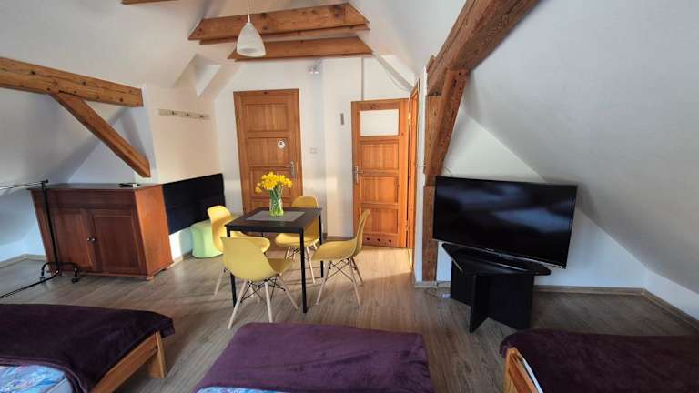 Das Kwatery u Jarka befindet sich in Jelenia Góra, einer Stadt in Niederschlesien. Der Dinopark liegt nur 17 km entfernt und ist ein beliebtes Ausflugsziel für Familien. Der Busbahnhof Szklarska Poreba ist 18 km entfernt und die Todeskurve erreichen Sie nach 19 km. Der nächste Flughafen, Nikolaus-Kopernikus-Breslau, liegt 103 km entfernt. In der Umgebung gibt es zahlreiche weitere Sehenswürdigkeiten und Aktivitäten, die darauf warten, entdeckt zu werden.