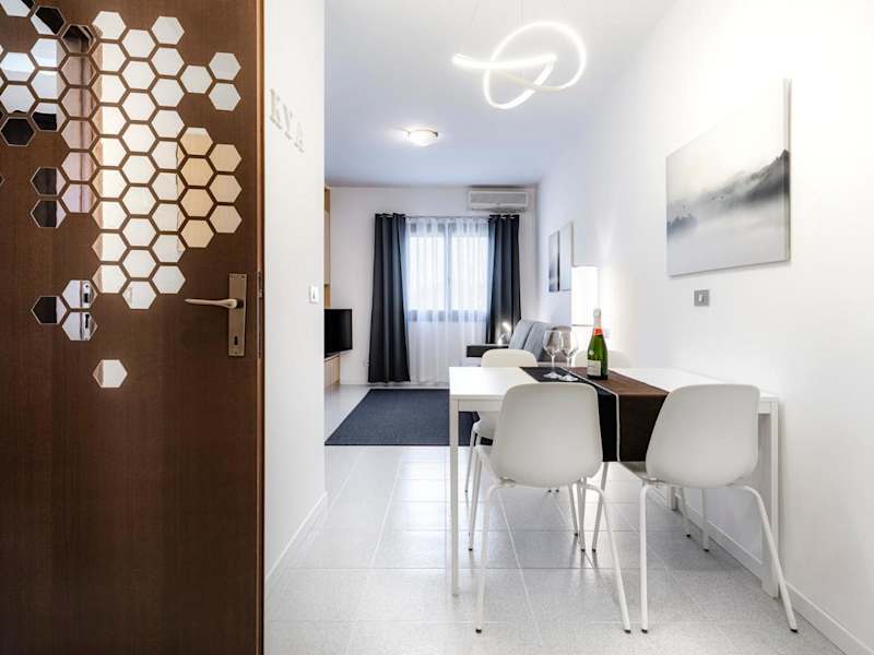 Die Ferienwohnung ist klimatisiert und besteht aus einem Schlafzimmer, einem Wohnzimmer sowie einer voll ausgestatteten Küche, die mit einem Kühlschrank und einer Kaffeemaschine ausgestattet ist. Zur Wohnung gehören außerdem ein Badezimmer mit Bidet und Dusche, Handtücher sowie Bettwäsche.