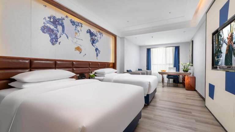 Das Kyriad Hotel Shantou Chaoyang Heping store befindet sich in Chaoyang, etwa 33 km von Shantou Tian Tan Garden entfernt. Die Unterkunft bietet einen Stadtblick und liegt in der Nähe mehrerer Sehenswürdigkeiten, einschließlich Shantou People's Square (34 km), Shantou Zhongshan Park (35 km) und Shantou Seaside Corridor (36 km). Der Internationale Flughafen Jieyang Chaoshan ist 60 km entfernt.
