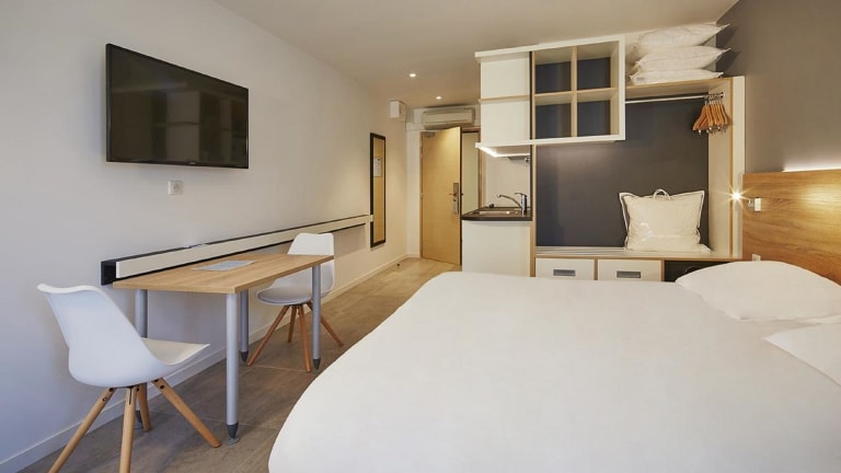 Das Kyriad Résidence Cabriès - Plan de Campagne ist ein modernes Aparthotel in Cabriès, das seinen Gästen eine komfortable Unterkunft mit kostenfreiem WLAN bietet. Die Zimmer sind klimatisiert und mit einem Flachbild-TV ausgestattet. Das Hotel verfügt über einen Außenpool und eine Terrasse, auf der Sie entspannen können. Jeden Morgen wird ein Frühstücksbuffet serviert. Das freundliche Personal an der Rezeption steht Ihnen gerne zur Verfügung. Das Hotel bietet auch Tagungseinrichtungen und einen Wäscheservice.