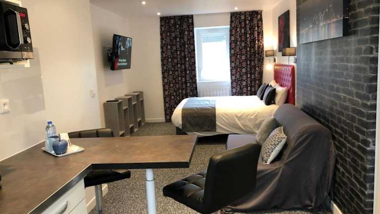 Jede Wohneinheit ist mit einer ausgestatteten Küche ausgestattet, die einen Kühlschrank, Ofen, Mikrowelle und Kaffeemaschine umfasst. Zusätzlich gibt es ein Wohnzimmer mit einem Schlafsofa und Flachbild-TV sowie ein eigenes Badezimmer mit Haartrockner und Dusche.