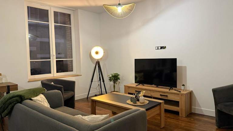 L'appart d'Arches - 2 chambres centre ville bietet Übernachtungsmöglichkeiten in einer Ferienwohnung, die aus zwei Schlafzimmern, einem Wohnzimmer und einer voll ausgestatteten Küche besteht. Die Wohnung befindet sich im Erdgeschoss und verfügt über Annehmlichkeiten wie kostenfreies WLAN und einen Flachbild-TV. Gartenblick ist ebenfalls vorhanden. Die Unterkunft wird von einem privaten Gastgeber betrieben und erlaubt keine Junggesellen- oder vergleichbaren Feiern. Das Mindestalter für den Check-in beträgt 18 Jahre.