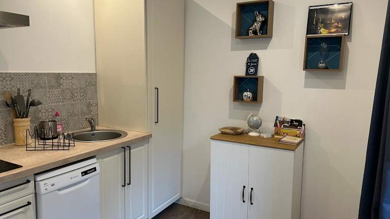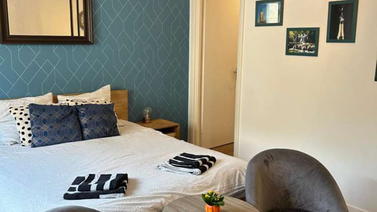 Die Ferienwohnung umfasst 1 Schlafzimmer und 1 Badezimmer. Sie ist mit Bettwäsche, Handtüchern, einem Flachbild-TV sowie einem Essbereich ausgestattet. Eine voll ausgestattete Küche ist ebenfalls vorhanden. Zudem bietet die Unterkunft eine Terrasse mit Blick auf den Garten.