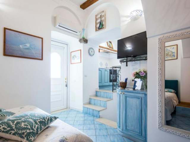 Das L'ARCO DEI QUATTRO VENTI ist eine charmante Unterkunft in Minori, weniger als 1 km vom Strand entfernt. Hier erwartet Sie ein Ferienhaus mit einem schönen Garten, kostenfreiem WLAN und einem freundlichen 24-Stunden-Service. Die Unterkunft bietet eine ideale Lage, um die umliegenden Sehenswürdigkeiten wie die Kathedrale von Amalfi und den Hafen von Amalfi zu erkunden. Das klimatisierte Ferienhaus verfügt über ein gemütliches Schlafzimmer, ein Wohnzimmer, eine voll ausgestattete Küche und ein modernes Badezimmer. Starten Sie Ihren Tag mit einem leckeren italienischen Frühstück und genießen Sie entspannte Momente auf der Terrasse oder am Kinderspielplatz. Die Strände von Maiori und der Hafen von Maiori sind ebenfalls leicht erreichbar.