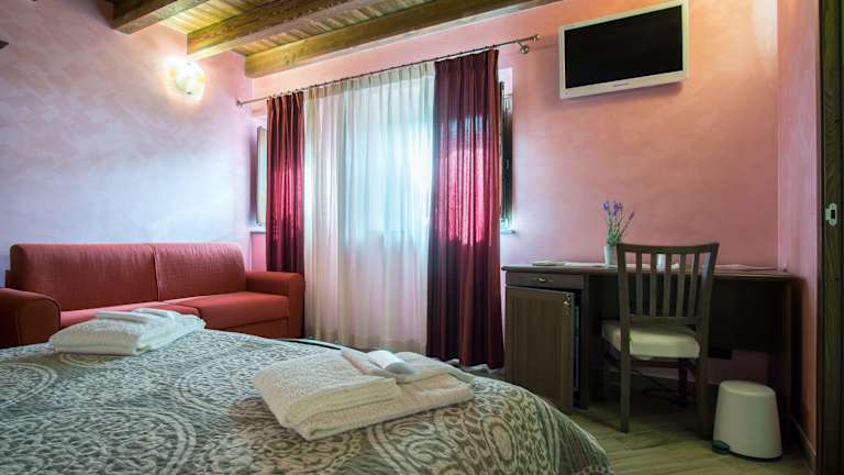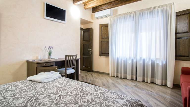 Die Zimmer im Hotel L'Arco dei Sogni sind komfortabel und gut ausgestattet. Jedes Zimmer verfügt über eine Klimaanlage, einen Kühlschrank, eine Kaffeemaschine, kostenfreie Pflegeprodukte und einen Schreibtisch. Einige Zimmer bieten auch einen schönen Stadtblick und ein eigenes Bad mit Dusche und Haartrockner. Ein Kleiderschrank und ein Flachbild-TV sind ebenfalls vorhanden.