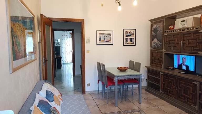 Die Wohnung umfasst 2 Schlafzimmer sowie ein Wohnzimmer und ist mit einer voll ausgestatteten Küche ausgestattet, die einen Kühlschrank und eine Kaffeemaschine beinhaltet. Zusätzlich stehen 1 Badezimmer mit Bidet und Badewanne oder Dusche zur Verfügung. Handtücher und Bettwäsche werden bereitgestellt.