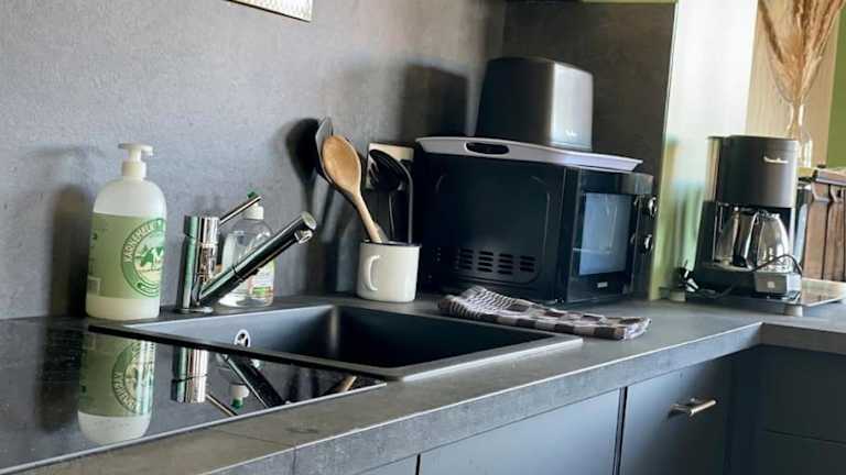 Das Chalet verfügt über zwei Schlafzimmer, ein Wohnzimmer und eine voll ausgestattete Küche mit Kühlschrank und Kaffeemaschine. Zudem gibt es ein Badezimmer mit Dusche und Haartrockner. Handtücher und Bettwäsche werden bereitgestellt.