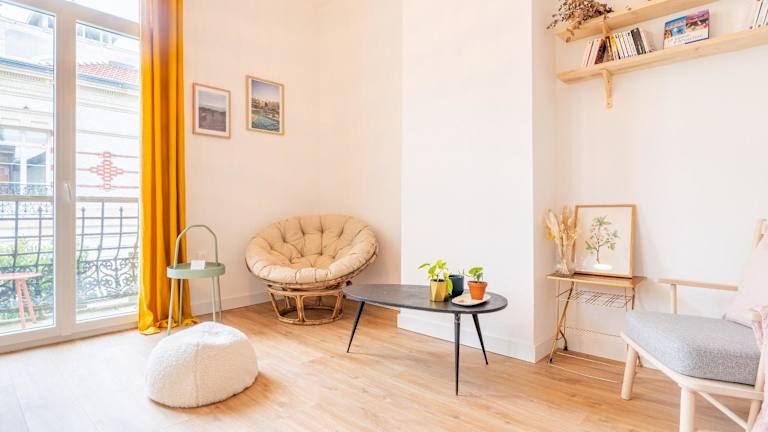 L'Atypique - Appt à 150m de la plage bietet eine Unterkunft mit kostenlosem WLAN und ist ein Nichtrauchergebäude. Check-in ist von 16:00 bis 22:00 Uhr möglich, der Check-out bis 10:00 Uhr. Die Unterkunft ist für Gäste ab einem Mindestalter von 18 Jahren geeignet, und Haustiere sind nicht gestattet. Regeln zur Nutzung der Unterkunft schließen Feiern wie Junggesellenabschiede aus.