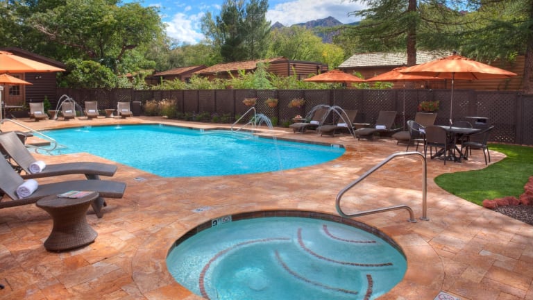 Das L'Auberge De Sedona in Sedona ist ein erstklassiges Resort, das Ihnen einen luxuriösen Aufenthalt bietet. Genießen Sie den Außenpool, das Wellnesscenter und die exquisite Küche des Restaurants. Die Zimmer sind komfortabel und stilvoll eingerichtet und bieten Ihnen einen erholsamen Rückzugsort. Das Hotel bietet zudem einen kostenlosen Shuttleservice in die Innenstadt von Sedona.